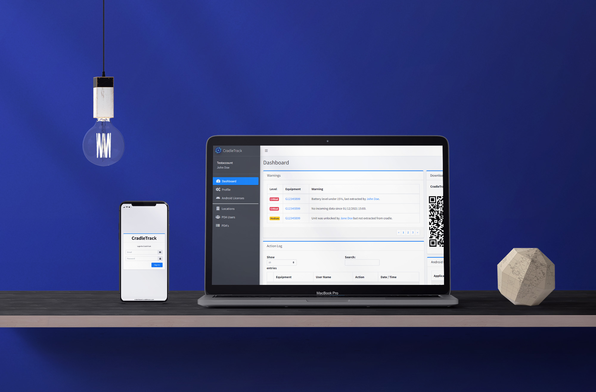 The CradleTrack webportal is accessible by browser from your desktop, or from a mobile tablet or PDA.